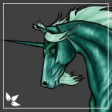 Description:Lightheel is tall and slender, very fragile and willowy looking. She is sea-green in color, which darkens at her shoulders and around her left eye and lightens on her legs, belly, and hips. Her left hind leg has a tall, broken stocking of white, and she has a crooked white blaze. Her mane, tail, beard, and ear tufts are pale green, and her horn fades from sea-green to sea-blue. Her hooves and eyes are both greenish blue. She has a fair amount of scarring along the top joint of her left hind from a particularly bad encounter with brambles.
