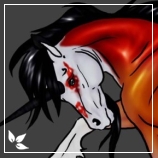 Background:Navaho stood at the edge of the Plains where it met the Smoking Hills. He stared out at the rolling expanse with no emotion. A passer by would not have been able to glean any information about what he was thinking from his features, except indifference from his ears which were perpetually kept cocked backwards. The roan and black stallion scanned his eyes once more over the swaying grasses where he had been born. He had been normal, at first. He ran and played with the other foals, until the other foals turned on him. They said he was different, too different to play with him. They teased him for wearing a mask like a primal warrior and many attacked him, goading him to fight. If he cried, they laughed. If he yelled, they beat him. If he had acted in anger, he only convinced them he was a savage. Thus he had been hardened. He taught himself to show nothing, be nothing. His dame was the only one who could coax anything out of him.