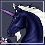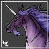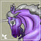 Description: Lilac with darker points. Her mane and tail tassel are silver as are her horn and fetlock feathers. She has a silver ring around each eye. Her eyes are a cold steel grey and her beard is a dark lilac. Her hooves are silver.